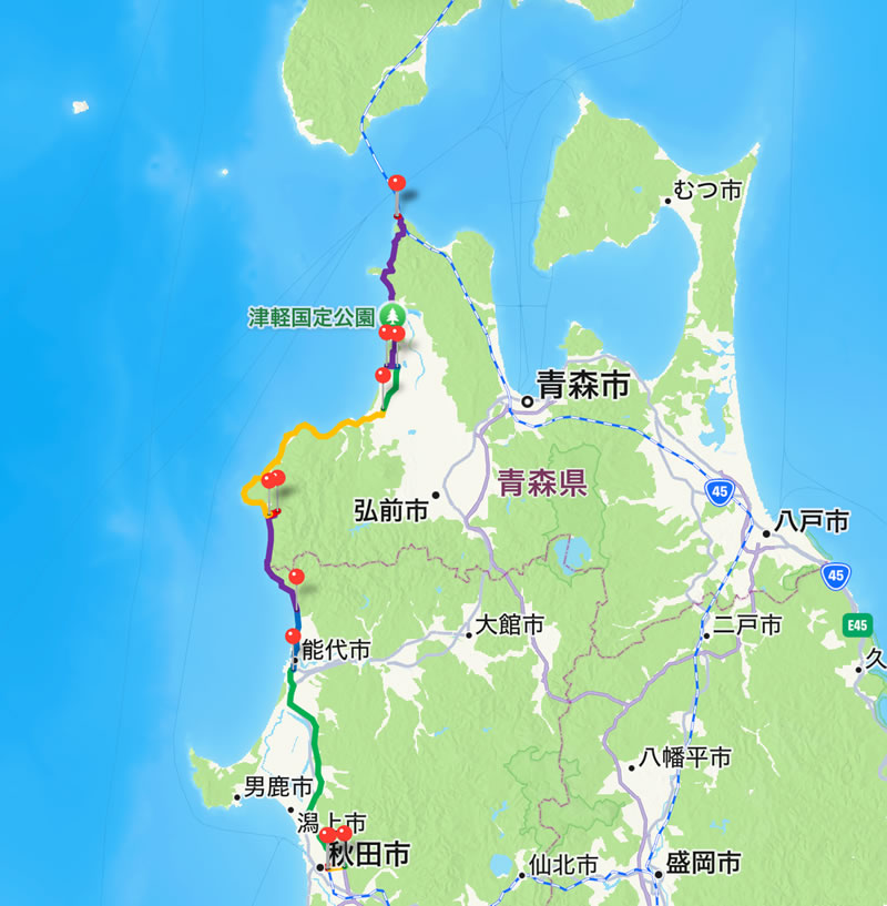 ■2024年 10月 03日(木)-東日本ツーリング Third Time 5日目 ◇行程 : 秋田 ⇒能代市 ⇒ 東八森 ⇒ 十二湖 ⇒ 十三湖 ⇒ 竜泊ライン ⇒ 竜飛岬